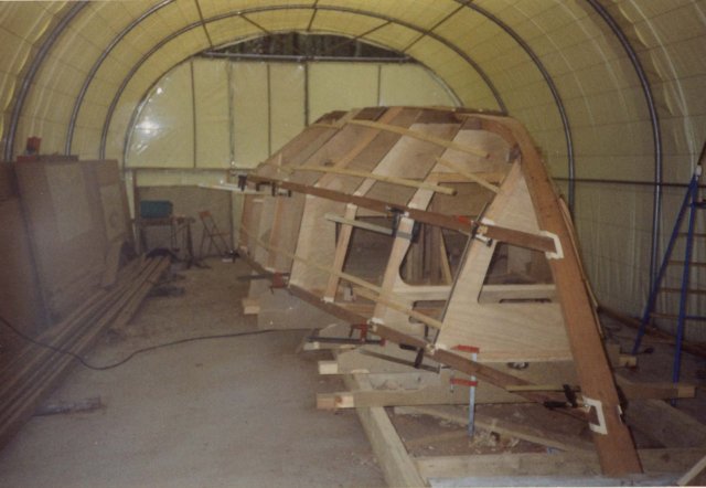 9 mètres 60 sur plan de J.P Villenave en CP acajou 1 er choix imprégnation epoxy.